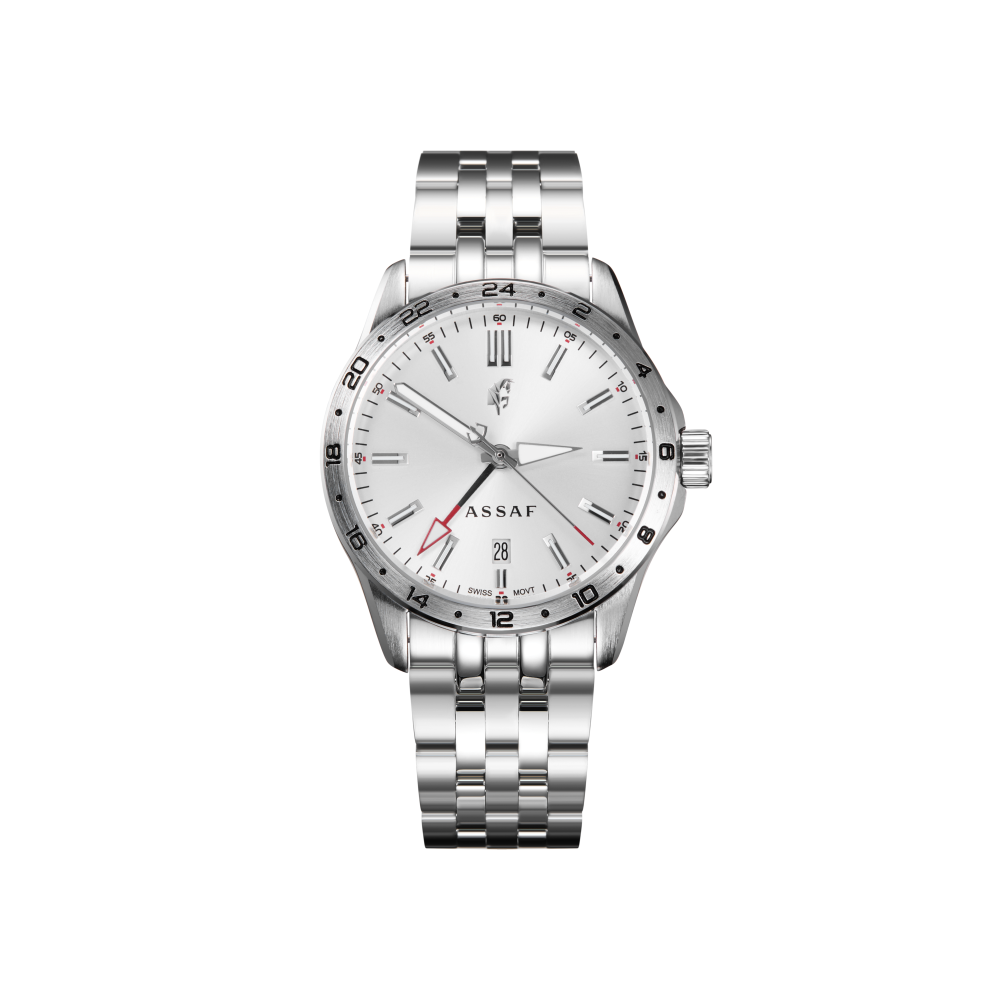 بتقنية GMT الذكية، تتيح لك قراءة توقيتين في لحظةٍ واحدة لتبقى حاضرًا في عالمين في آنٍ واحد: توقيت الوطن، وتوقيت العالم.